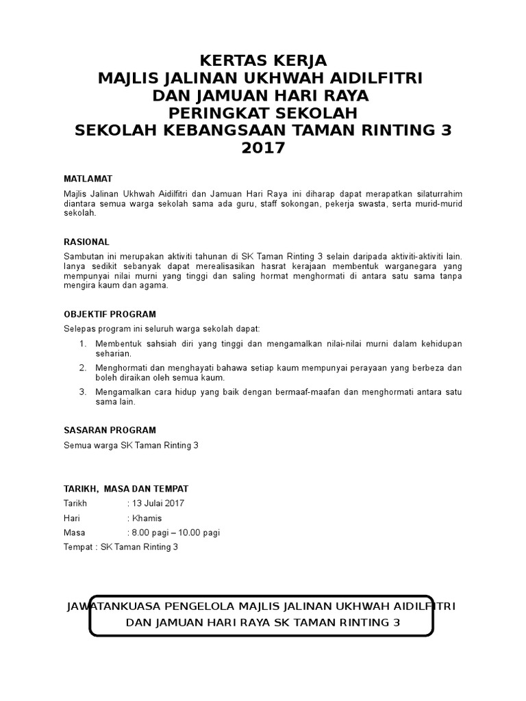 Kertas Kerja Majlis Hari Raya 2017 Pdf