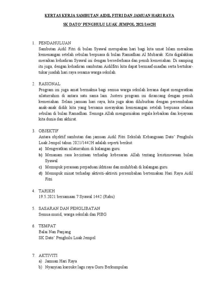 Kertas Kerja Sambutan Hari Raya Pdf